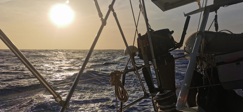 On met la trinquette parce qu'il y a beaucoup de vent. Les vagues sont hautes et de travers par rapport au bateau, c'est franchement désagréable, mais tout le monde supporte en silence.