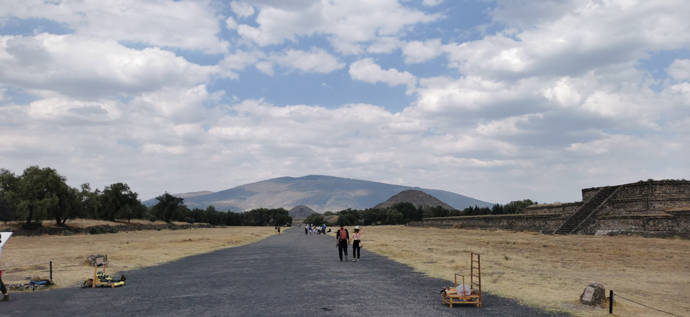 Teotihuacan a été une de cités majeure d'Amérique Centrale avec jusqu'à 100 000 habitants. Le paysage est désert, avec la montagne Cerro Gordo en fond de toile. Ça change de Kalakmul et Palenque dans la forêt ou Tulum au bord de la plage.