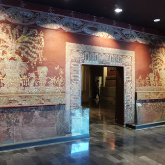 Il y a même une reproduction des peintures de Bonampak, à l'échelle. Je peux donc admirer les peintures de l'alcove numéro 2 qui était fermée aux visiteurs à Bonampak.