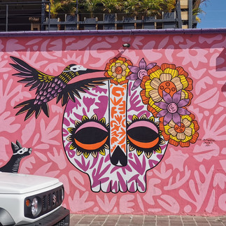 Je reviens ensuite à Oaxaca dans un petit taxi collectif. Je demande aux hommes dans la voiture ce qu'ils pensent de la journée de la femme, ils me répondent que ça les embête surtout parce que ça fait des bouchons dans le centre ville de Oaxaca. Et en effet, quand j'arrive en ville, les rues sont barrées et une procession défile. Je me balade en ville en cherchant un bus pour Monté Alban. C'est joli Oaxaca, il y a plusieurs expo artistiques en plein air.